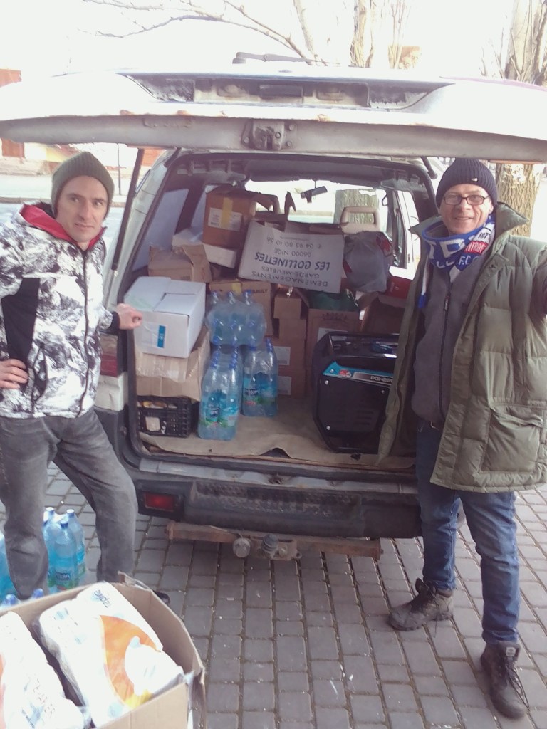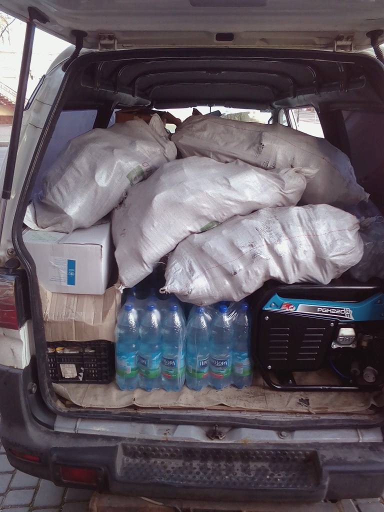 So we are on our way to Sloviansk/Bakhmut region to take supplies to troops, including medical packs, a generator, tins of meat and bottles of water amongst other things, i have my my flak jacket and hard hat so should be fine