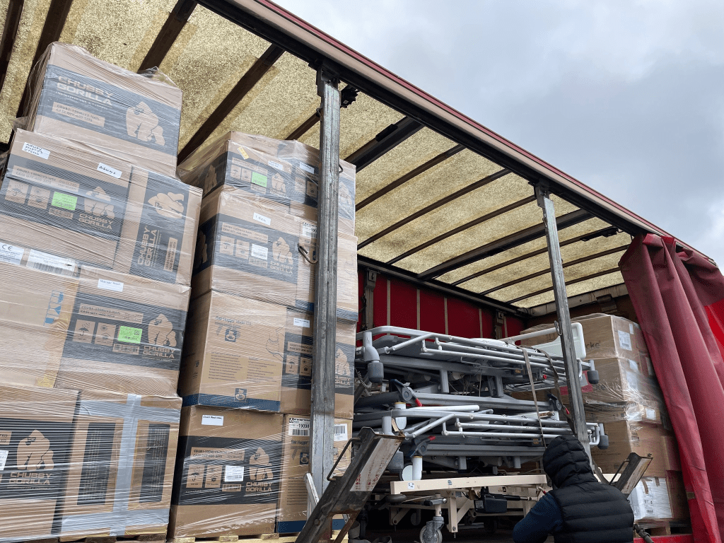 18 tonnes DAF truck for Ukrainian defenders packed with donations for hospitals thanks to your support, our big friend Rocky and Jacobs Well Appeal.