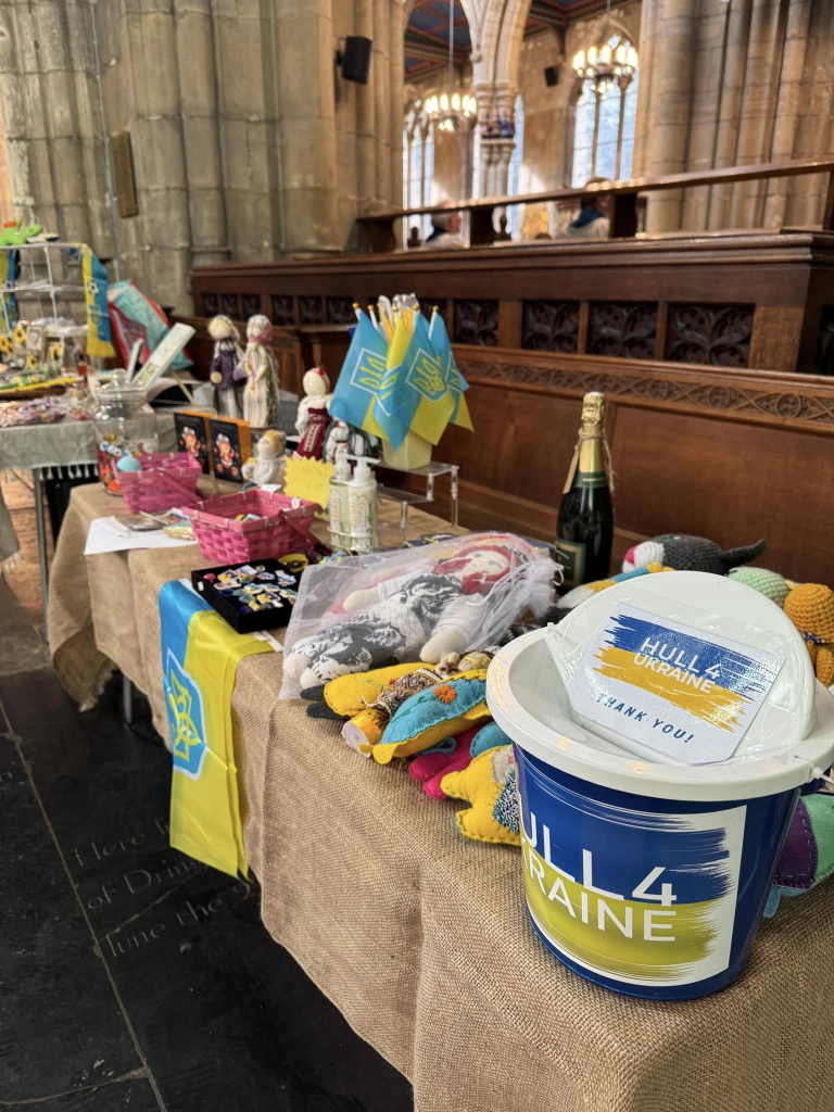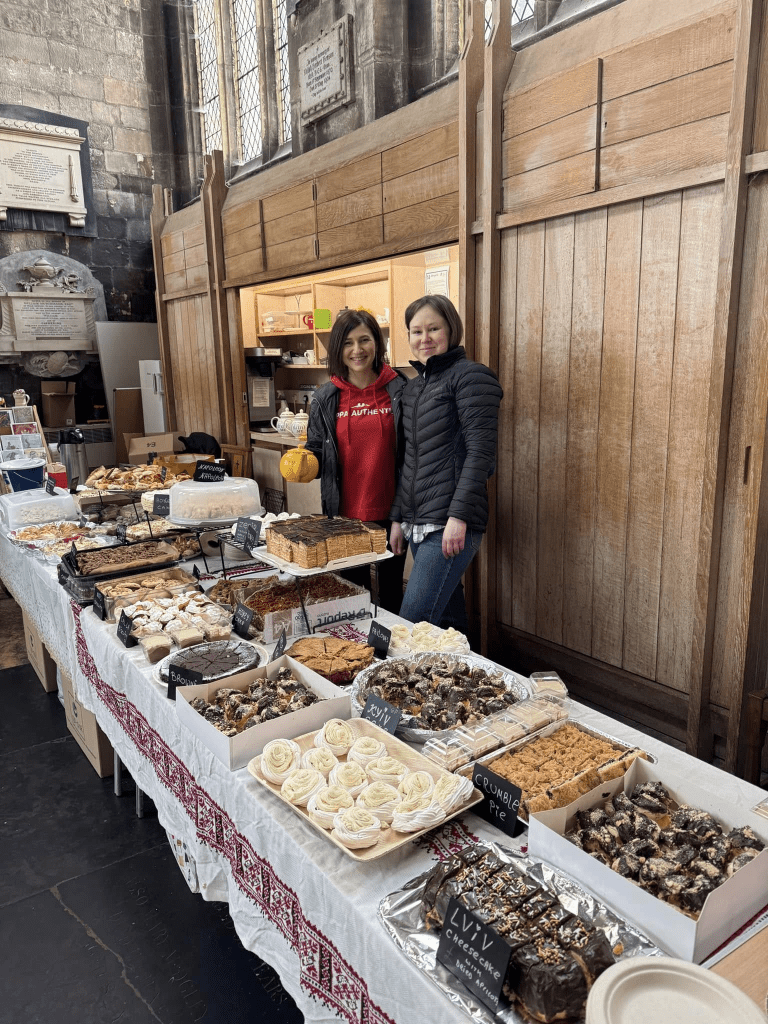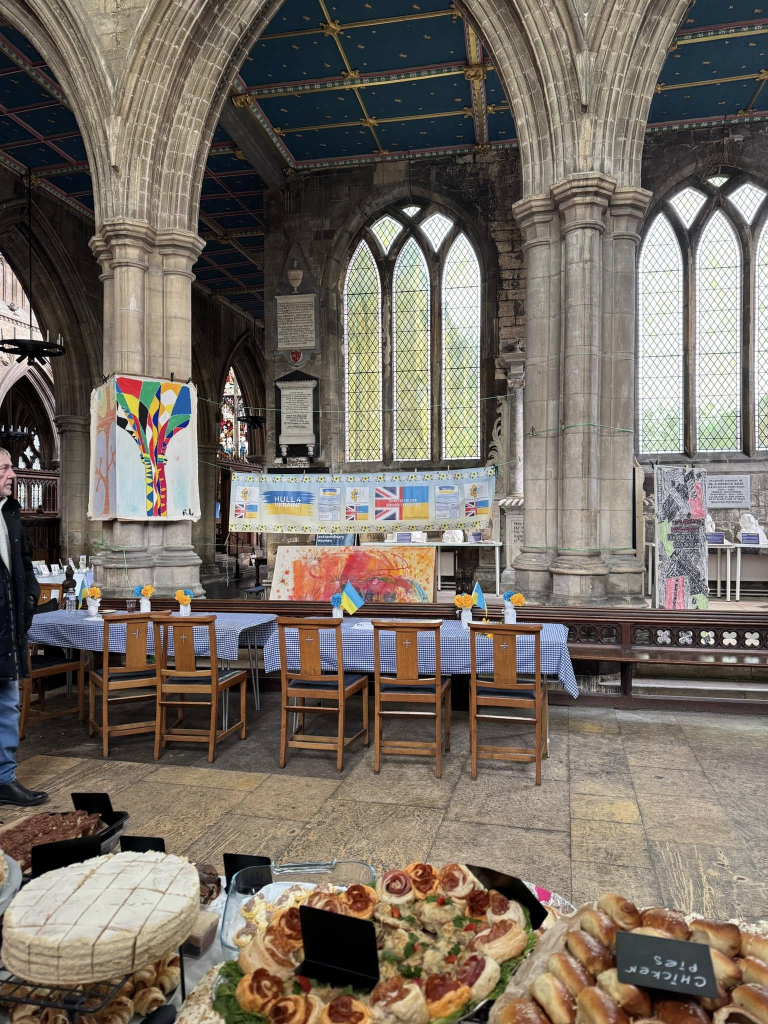 The Service was conducted by the Revd Becky Lumley, followed by beautiful singing, a piano recital, a photo exhibition (photos by Oxana Chorna ΠΠΊΡΠ°Π½Π° Π§ΠΎΡΠ½Π° , a professor of Economics in her former peaceful life and a photo journalist and a military medic now), tea & coffee, home baked cakes and a raffle.